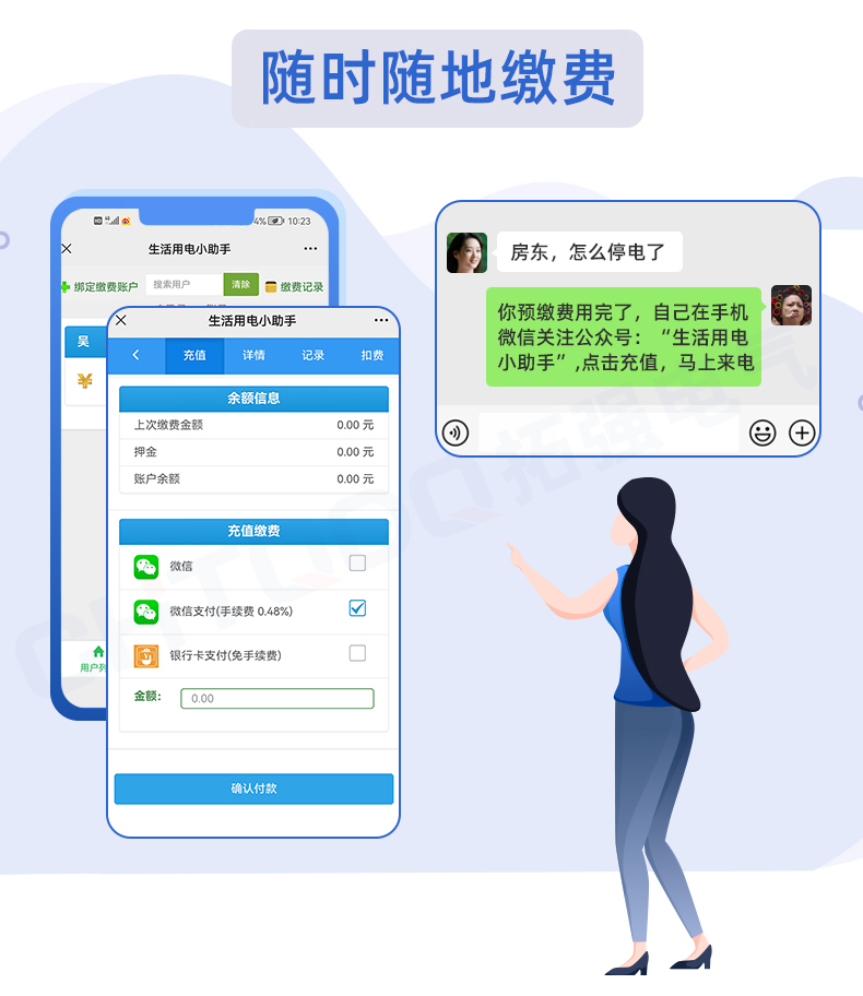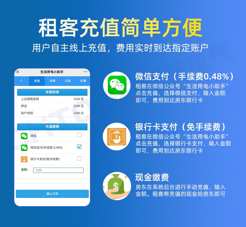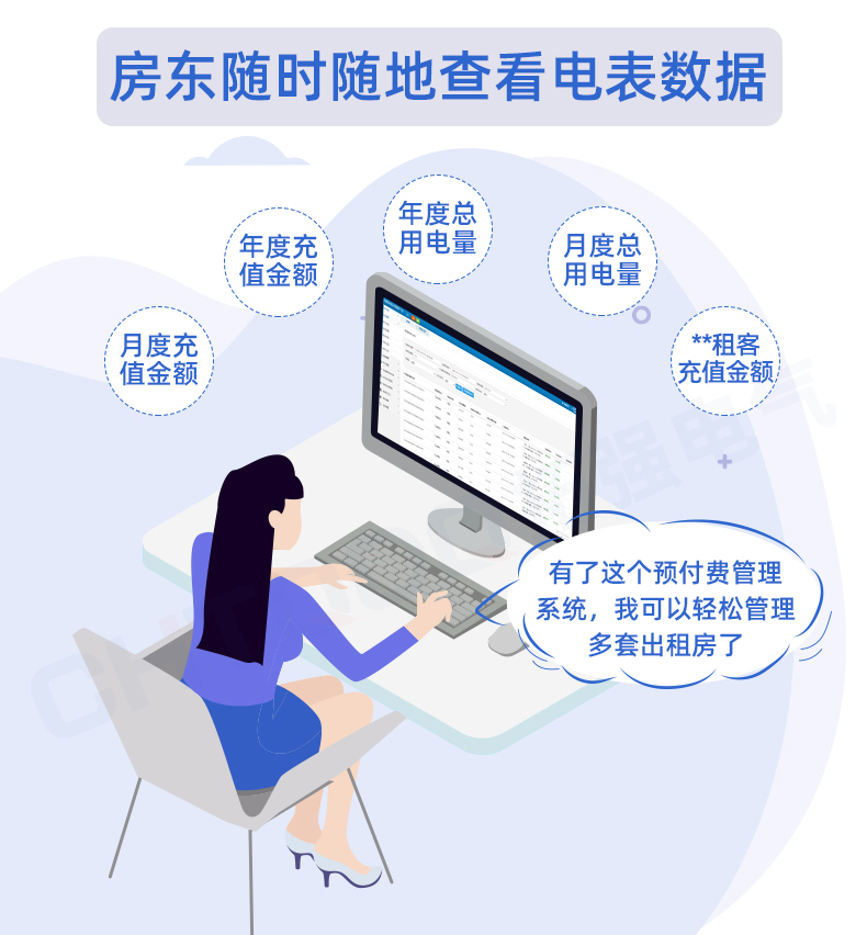 電表管理系統(tǒng)軟件廣泛用于各種房地產(chǎn)行業(yè)中,不僅能夠提高房東物業(yè)管理用電的效率,還能實(shí)現(xiàn)租客費(fèi)用的自主結(jié)算,利用繳費(fèi)管理、水電費(fèi)租金費(fèi)用合繳、費(fèi)用賬目管理、費(fèi)用安全管理等功能,全面解決各種收繳費(fèi)難題,為