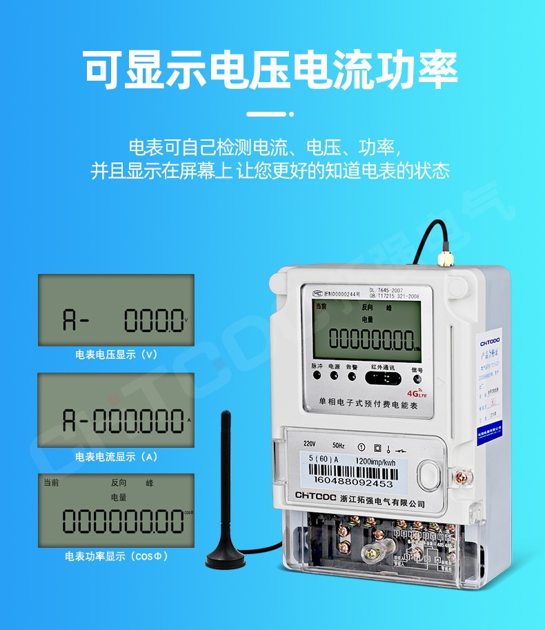 顯示功能 | 液晶顯示:用電量、電流、電壓、功率、頻率、剩余金額、上次購電金額 |