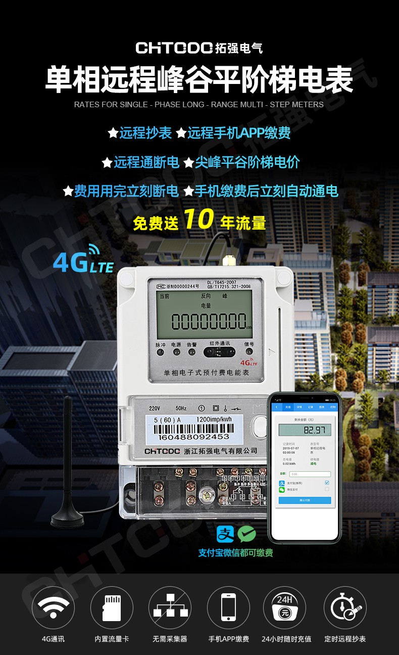 電表內(nèi)置10年4G流量 無需采集器 無需布線 通電后自動聯(lián)網(wǎng)