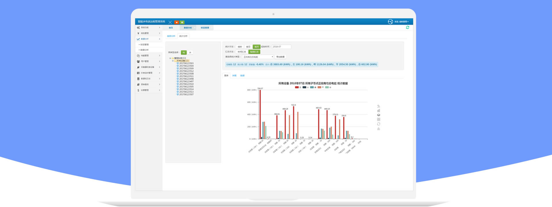 能源監(jiān)測(cè)抄表系統(tǒng),可繪制各項(xiàng)電量數(shù)據(jù)曲線圖,可顯示不同部門(mén)各時(shí)段用電情況