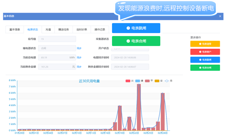 系統(tǒng)可定時(shí)或手動(dòng)實(shí)時(shí)控制電表,如遇能源浪費(fèi)及時(shí)斷電,實(shí)現(xiàn)降低生產(chǎn)成本。