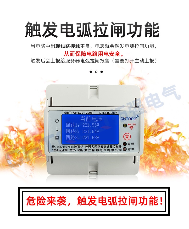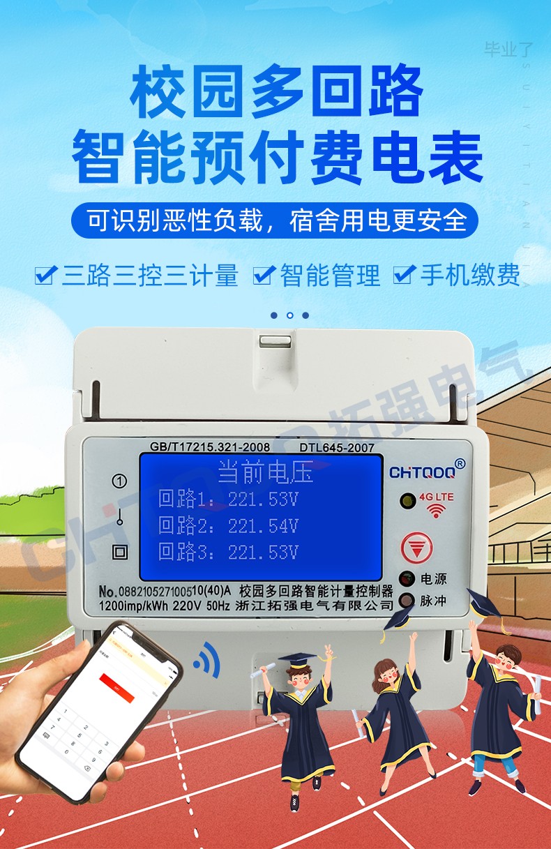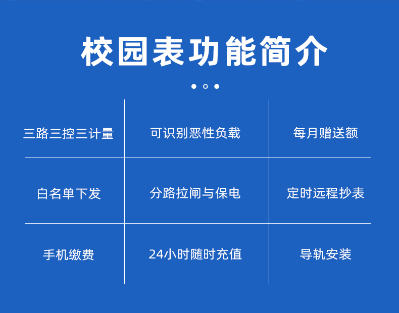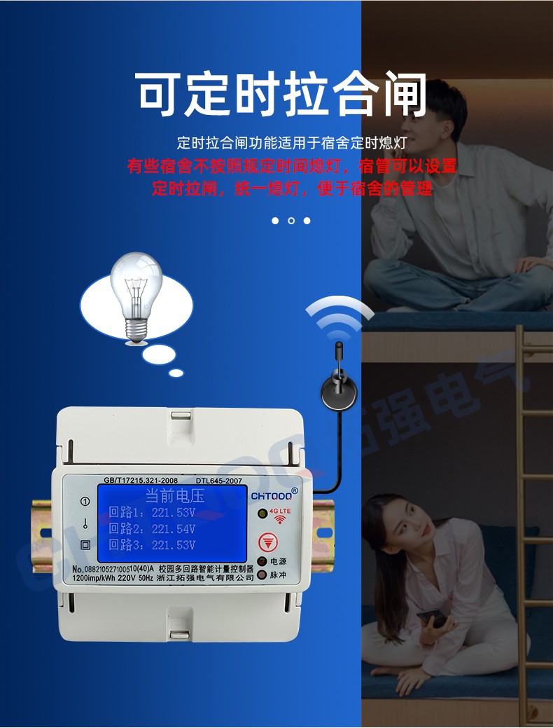 電表可識別大功率電器,當(dāng)學(xué)生使用熱得快,電飯鍋,夾發(fā)棒,熱水壺等大功率電器時,電表自動斷電并上報(bào)記錄到管理系統(tǒng)后臺。