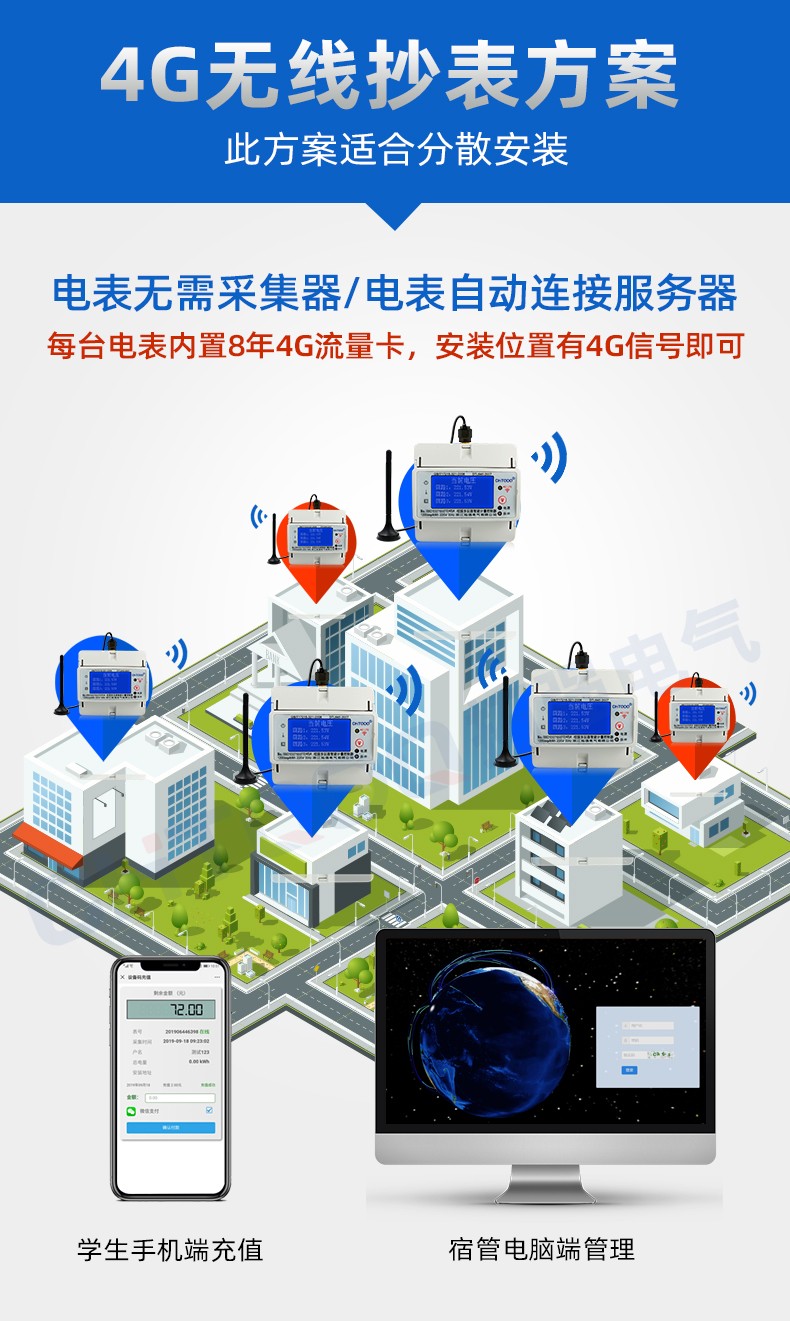 電表內(nèi)置4G流量卡,通電自動聯(lián)網(wǎng),實(shí)現(xiàn)遠(yuǎn)程繳費(fèi)抄表