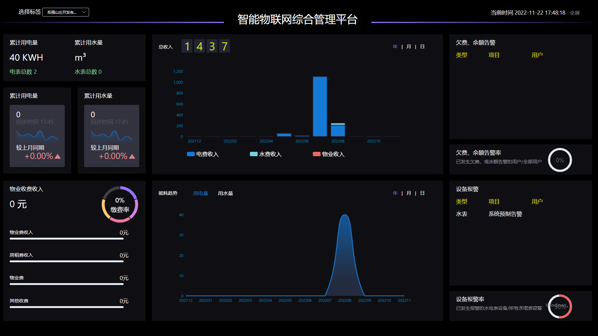 系統(tǒng)內(nèi)水電表用量情況、收費(fèi)數(shù)據(jù)、水電表狀態(tài)、曲線變化等內(nèi)容均可以在大屏上動(dòng)態(tài)展示。
