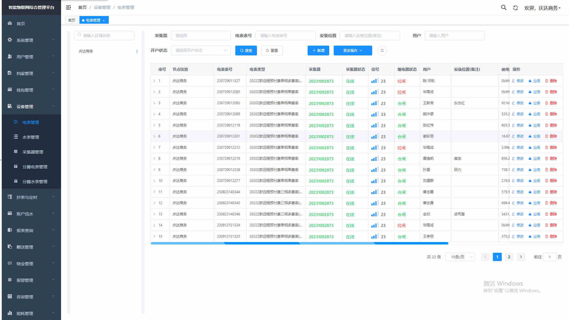 對(duì)電表、水表、采集器、充電樁、智能開關(guān)等遠(yuǎn)程進(jìn)行管理。