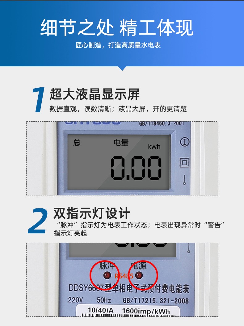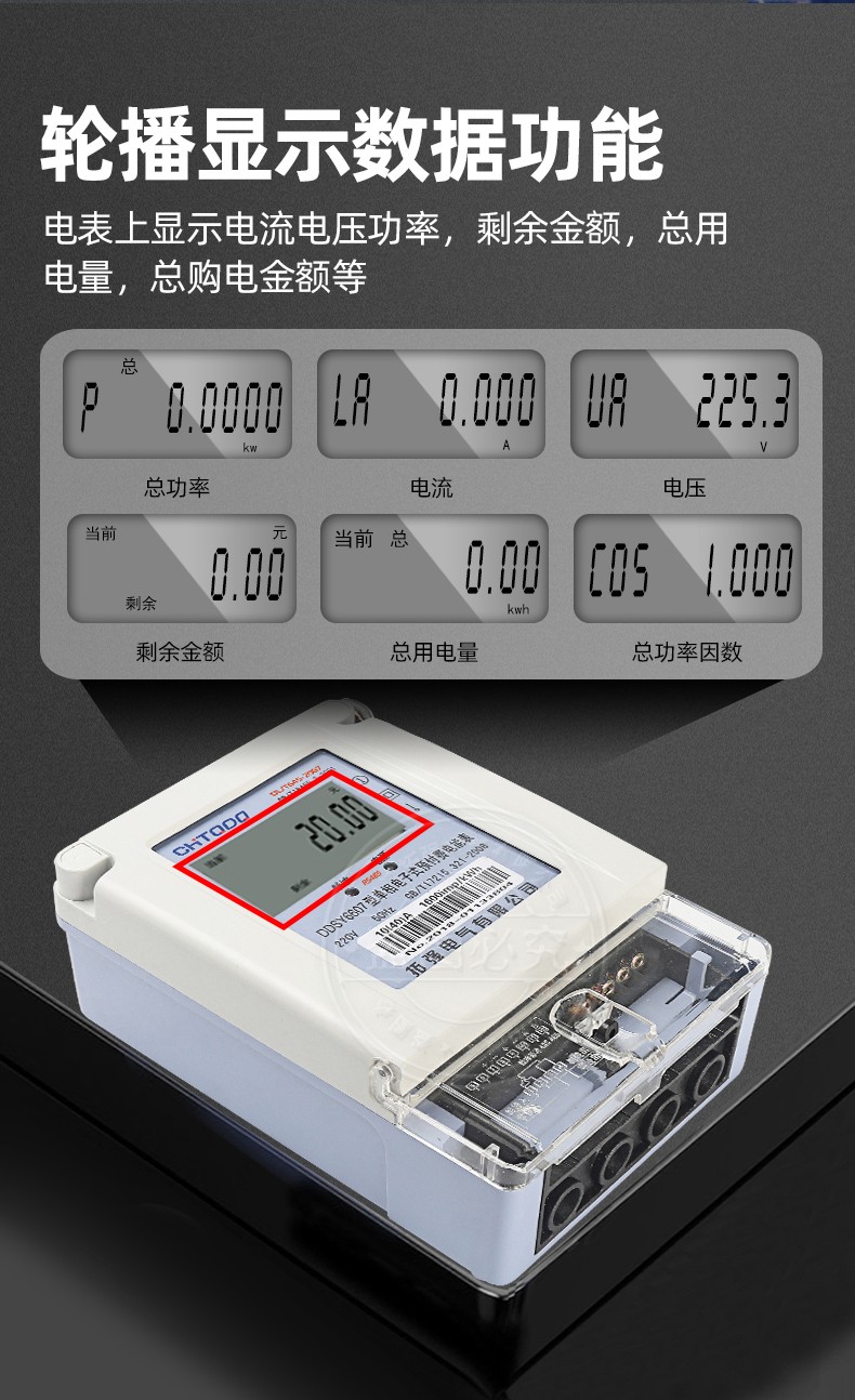 顯示功能 | 液晶顯示:用電量、電流、電壓、功率、頻率、剩余金額、上次購電金額 |