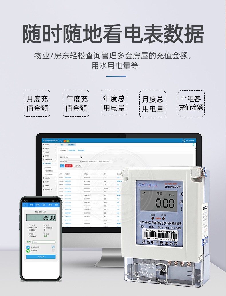 電表管理系統(tǒng)軟件廣泛用于各種房地產(chǎn)行業(yè)中,不僅能夠提高房東物業(yè)管理用電的效率,還能實現(xiàn)租客費用的自主結算,利用繳費管理、水電費租金費用合繳、費用賬目管理、費用安全管理等功能,全面解決各種收繳費難題,為